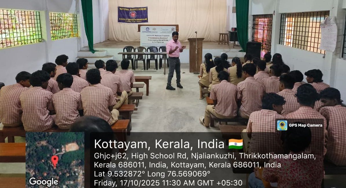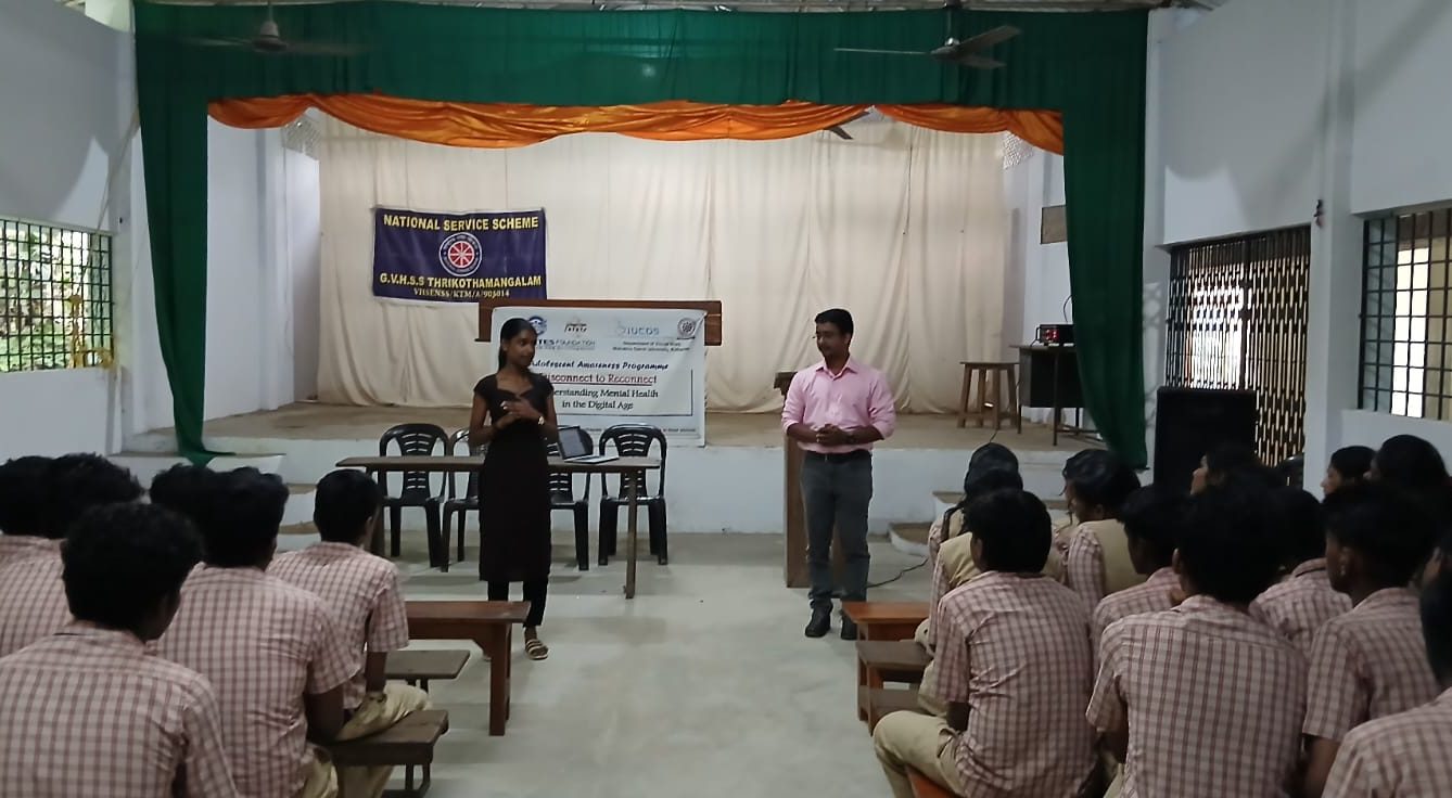 The Mental Health Awareness Programme titled “Disconnect to Reconnect” was conducted at Government VHSS, Thrikothamangalam on 17th October 2025 as part of the Connecting Future – Uniting Generations for a Sustainable Future campaign by Eyemates Foundation. The initiative aimed to promote emotional well-being among school students and encourage balanced digital habits in the modern age.