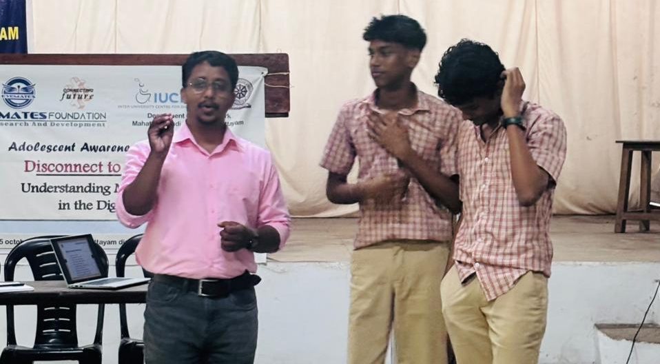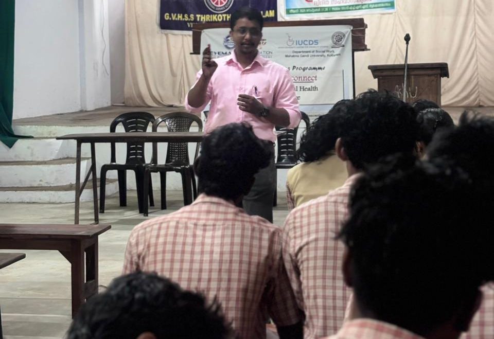 A total of 32 students participated in the interactive session, which focused on understanding the challenges of mental health in the digital era. The programme was facilitated by a team of professionals and volunteers from Eyemates Foundation and IUCDS, M.G. University, supported by the NSS unit of the school.