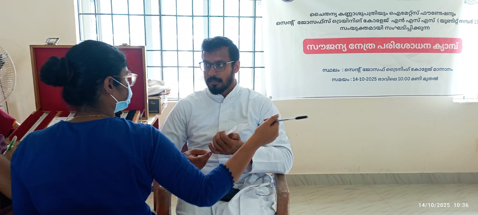 The Free Eye Testing Camp held at St. Joseph’s Training College, Mannanam on 14th October 2025 marked an important initiative under Eyemates Foundation’s Connecting Future – Uniting Generations for a Sustainable Future campaign. The programme aimed to promote eye health awareness and ensure early detection of vision problems among students and staff.