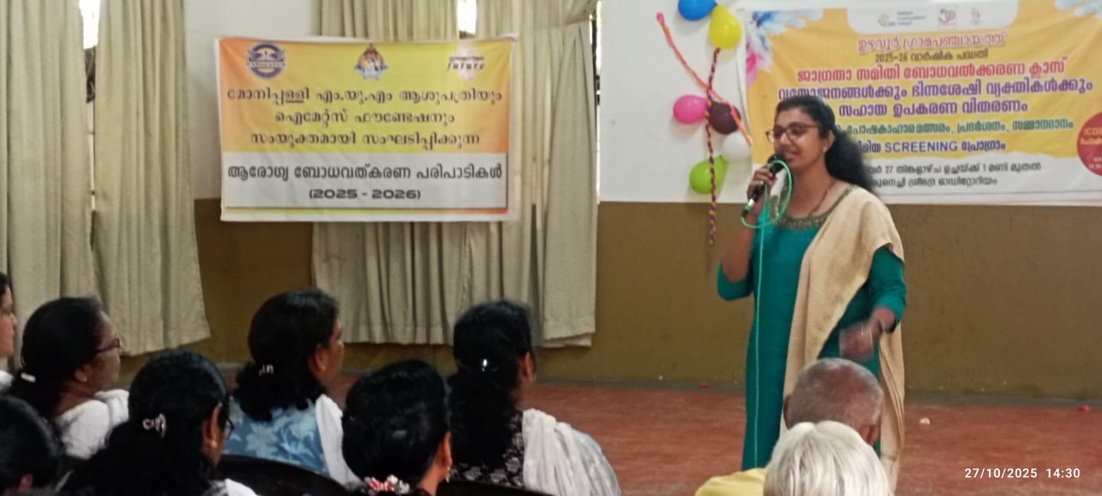 As part of Eyemates Foundation’s Connecting Future – Uniting Generations for a Sustainable Future campaign, a Breast Cancer Awareness Programme was conducted on 27th October 2025 at Sree Bhadra Auditorium, Uzhavoor, in association with M.U.M Hospital, Monippally. The session aimed to empower women with essential knowledge on early detection, prevention, and self-examination practices related to breast cancer.